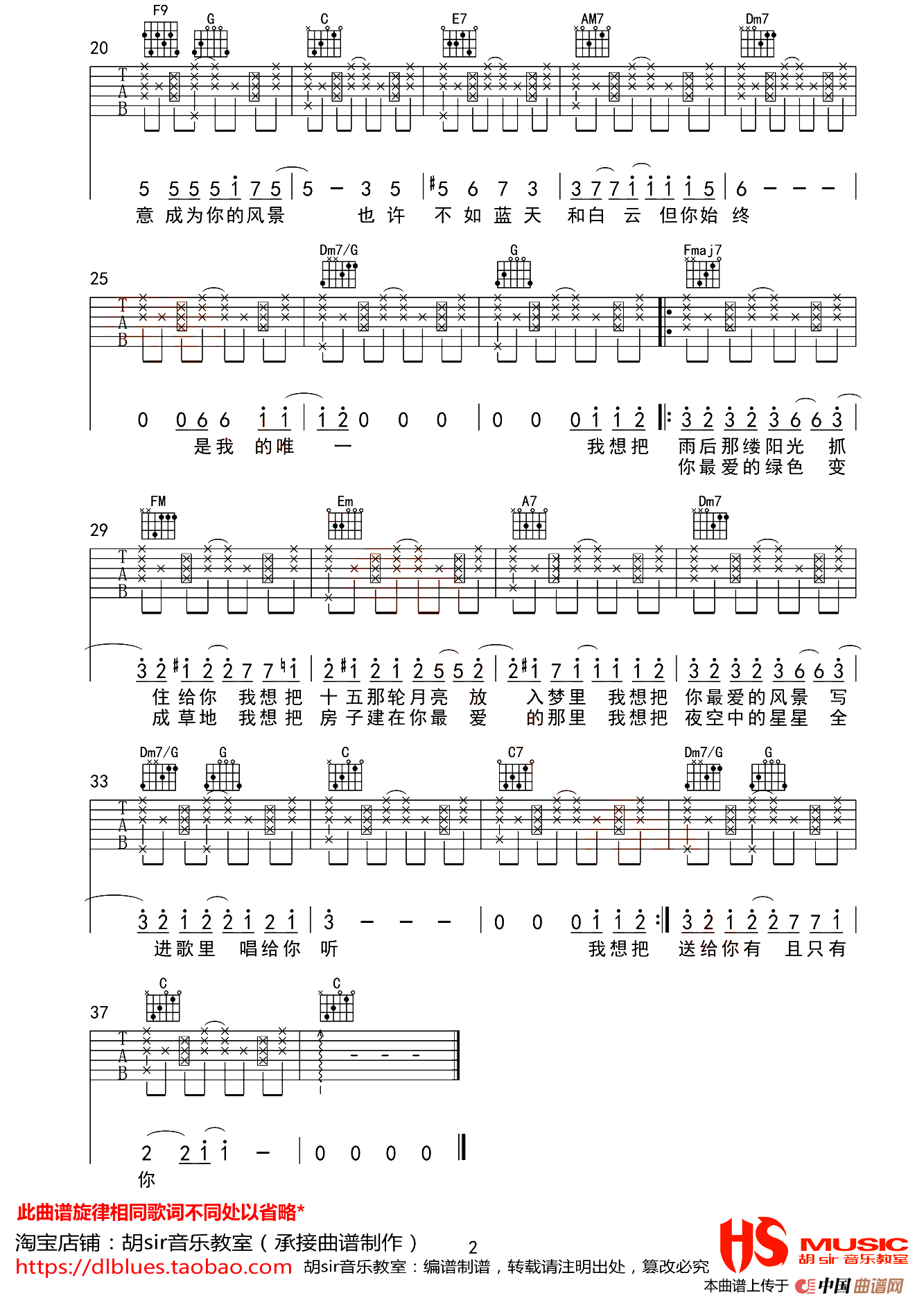 提示:在曲谱图片上单击右键,选择“图片另存为...”即可将曲谱保存到您的电脑中,打印时候可将图片插入到WORD中,调整合适大小打印即可。