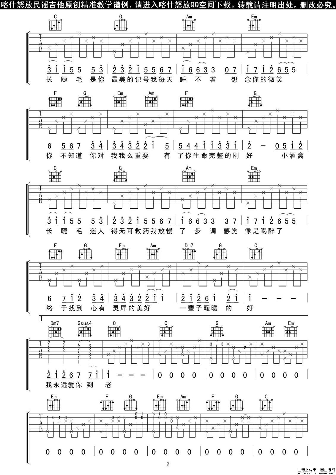 当前位置: 首页 器乐乐谱 吉他乐谱 小酒窝(喀什怒放编配版)