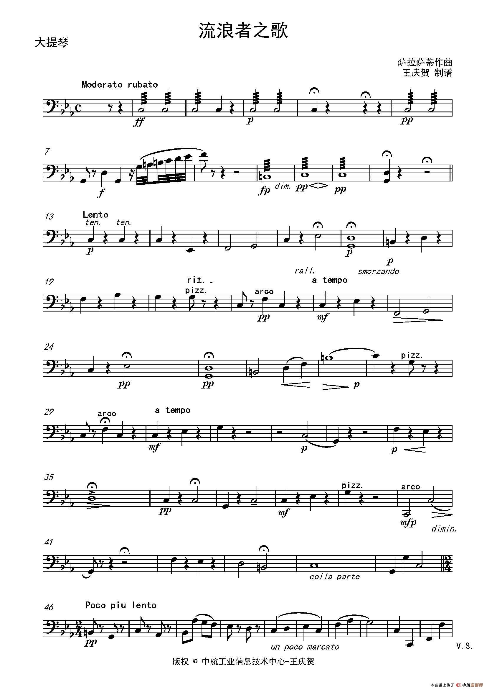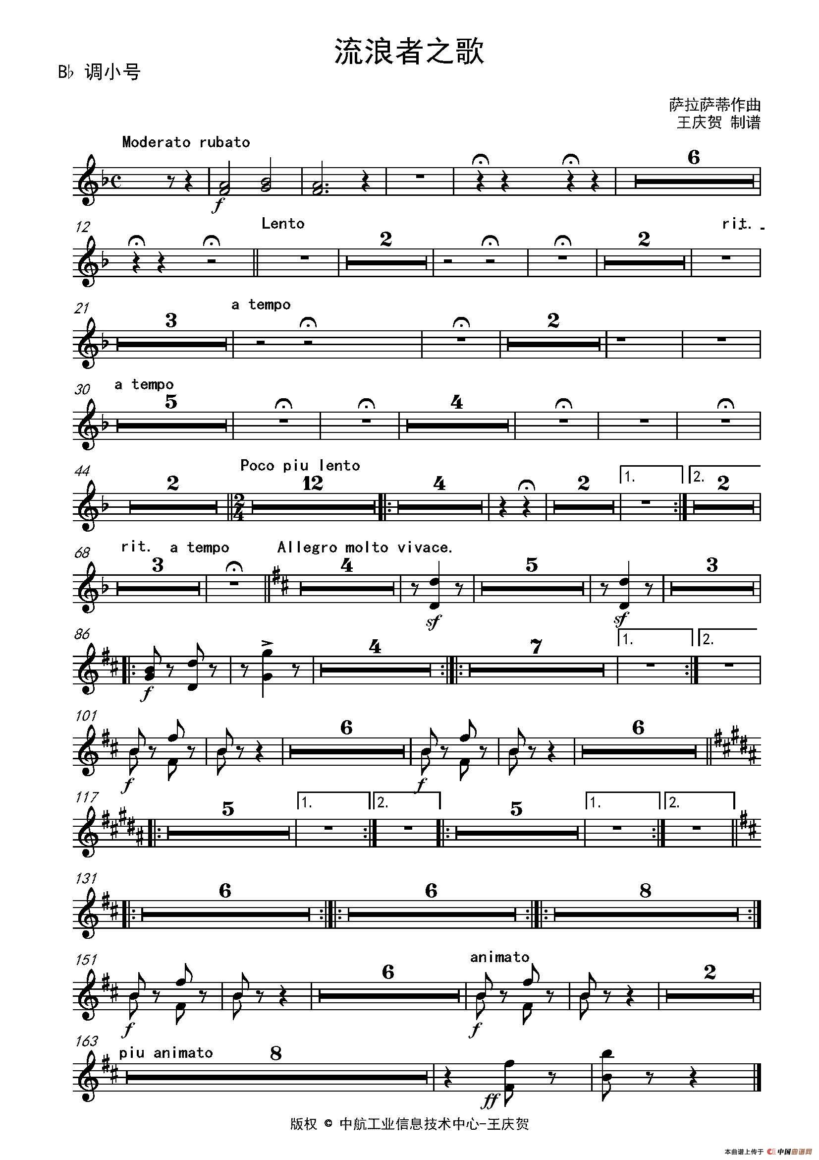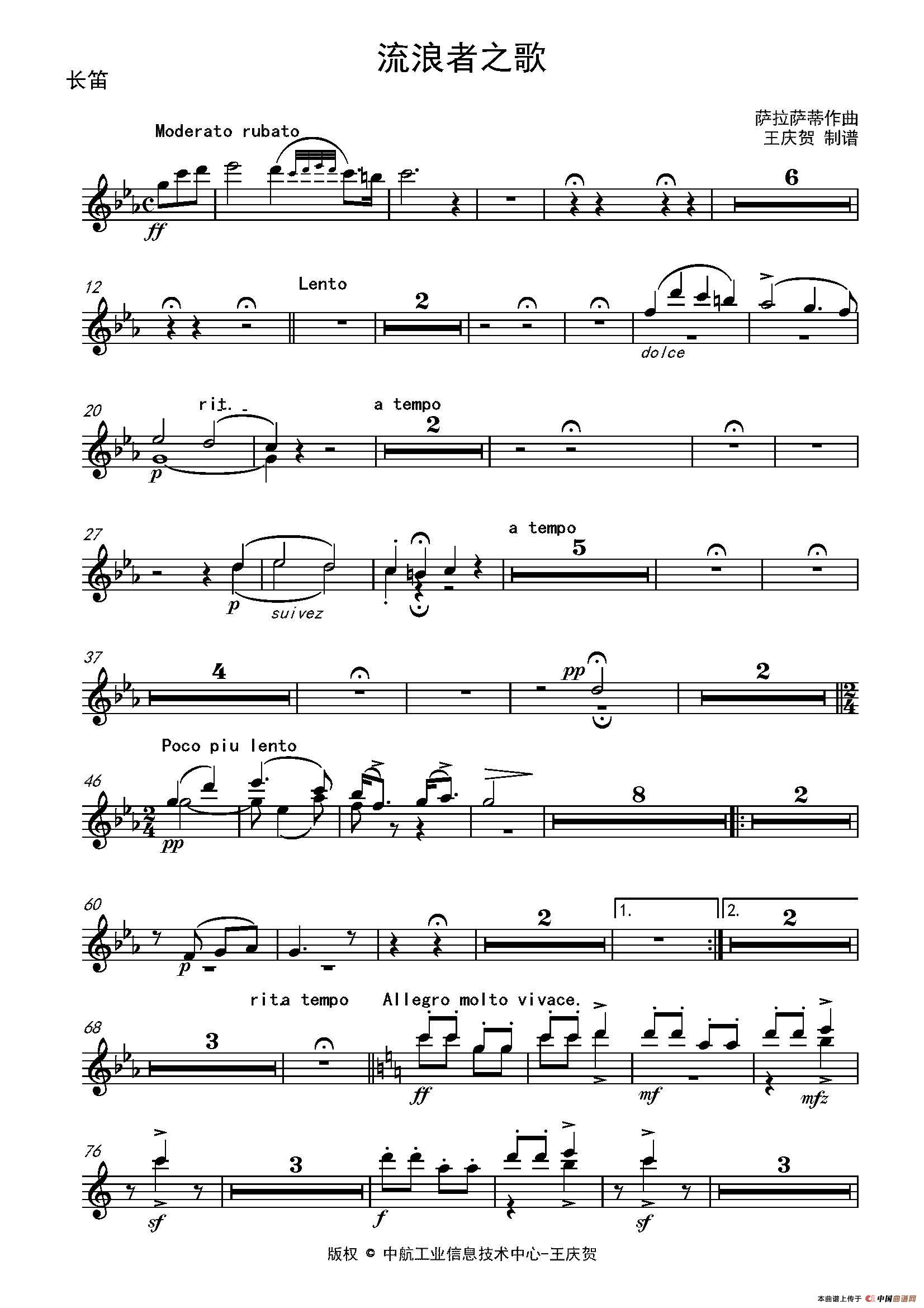 萨拉萨蒂的流浪者之歌,又称吉普赛之歌,在借鉴了老版油印曲谱后,将其中一些声部的乐器移调并更改了部分符号后重新排版,pdf是完整总谱+分谱,大学毕业后从事软件开发工作手头没有乐队了,分享给各位喜欢的朋友,仅供学习交流用途,不得用于商业目的,喜欢交流乐谱制作的朋友可以加我QQ:631199652,若有错误请不吝赐教。