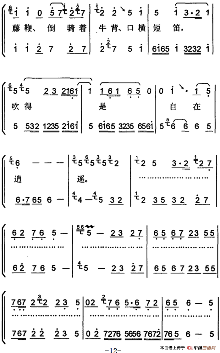 提示:在曲谱图片上单击右键,选择“图片另存为...”即可将曲谱保存到您的电脑中,打印时候可将图片插入到WORD中,调整合适大小打印即可。