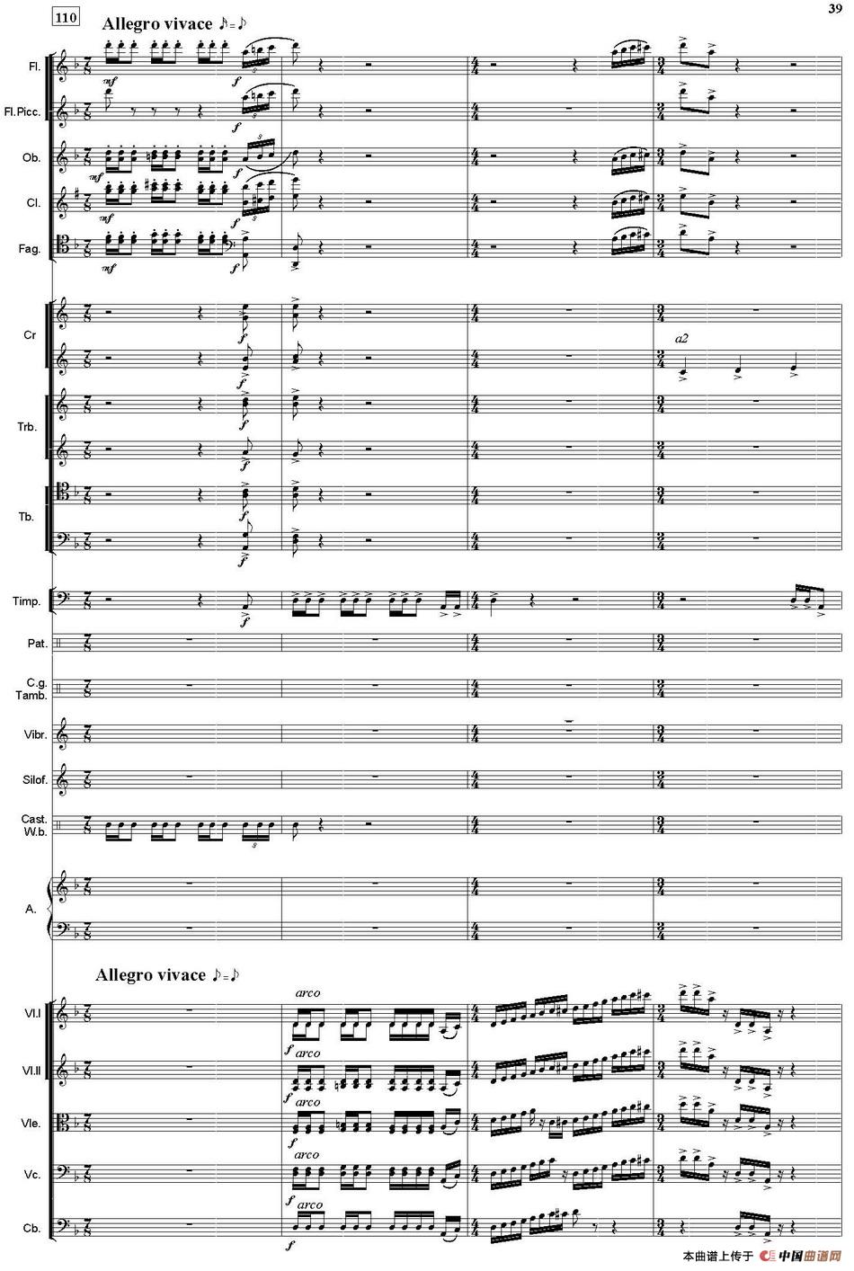 选自鲍元恺编著《炎黄风情——中国汉族民歌主题24首管弦乐曲·总谱》