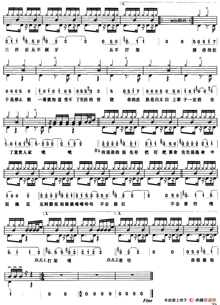 选自《架子鼓流行歌曲鼓谱50首》