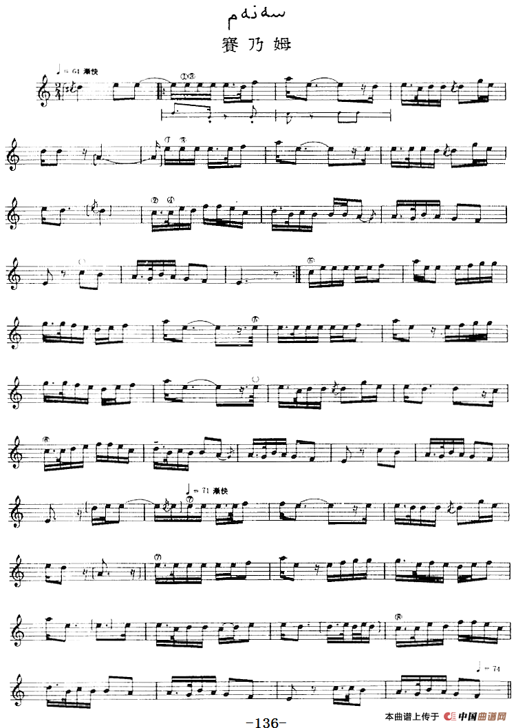 十二木卡姆:Ⅲ 木夏乌热克木卡姆 127——137(主旋律谱)