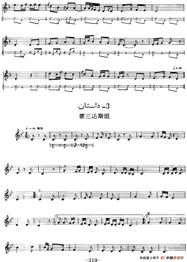十二木卡姆:Ⅵ 乌扎勒木卡姆 318——326(主旋律谱)