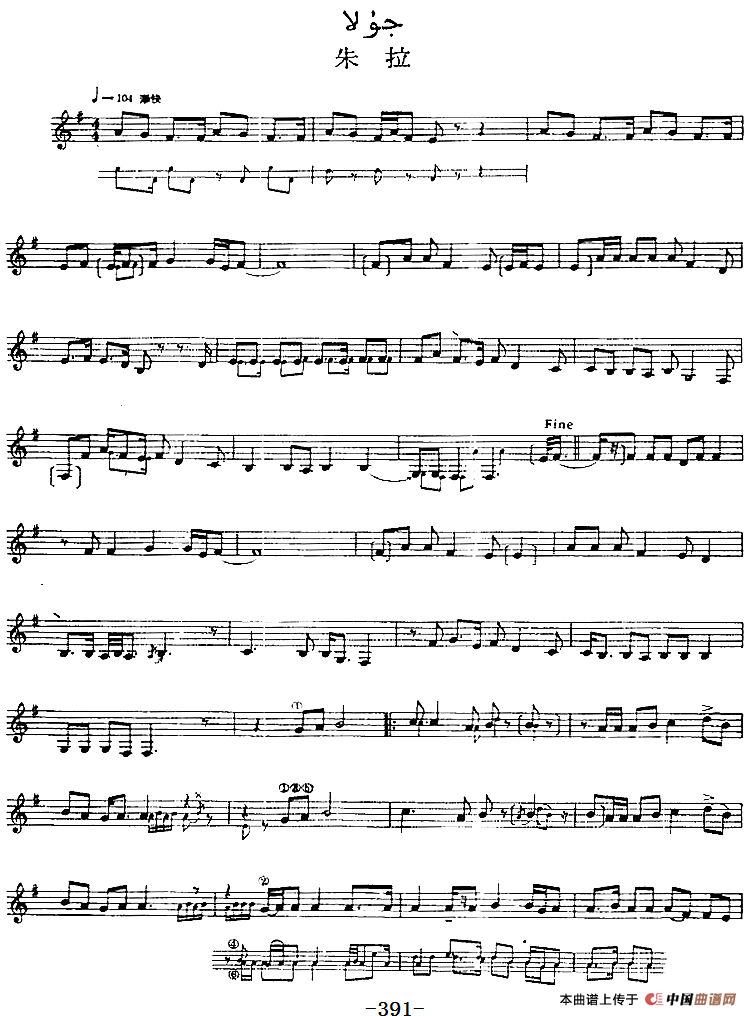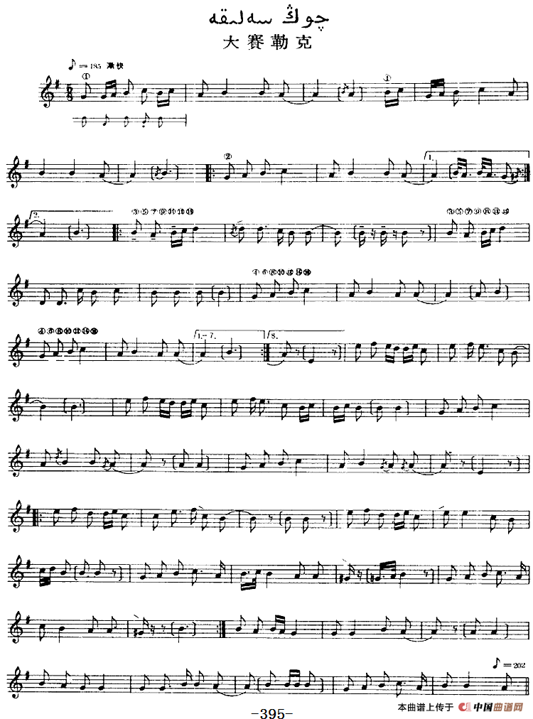 十二木卡姆:Ⅷ 乌夏克木卡姆 390——400(主旋律谱)
