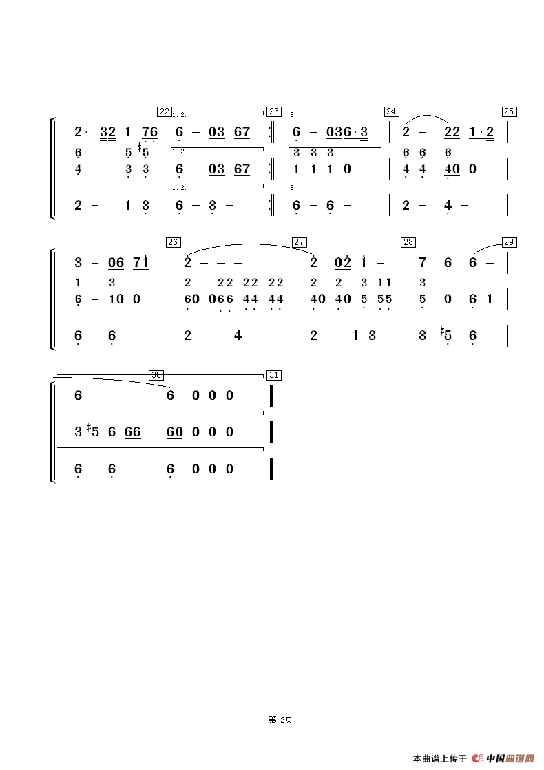 提示:在曲谱图片上单击右键,选择“图片另存为...”即可将曲谱保存到您的电脑中,打印时候可将图片插入到WORD中,调整合适大小打印即可。