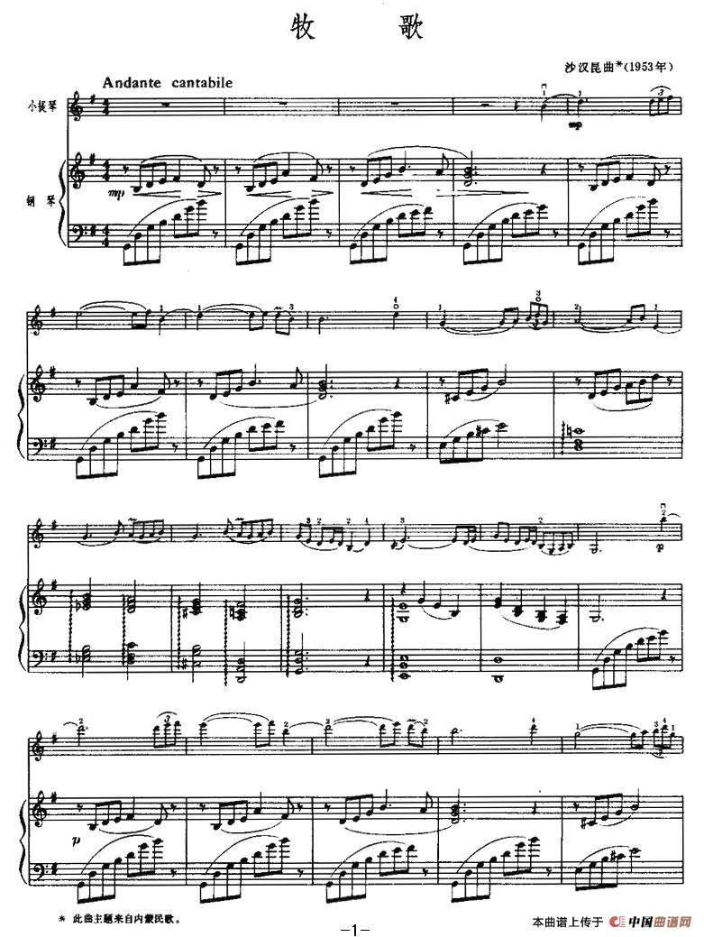 关于《牧歌》曲谱的评论