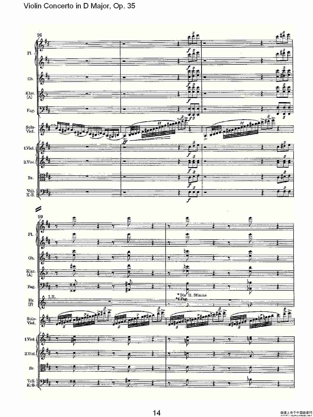 关于《D大调小提琴协奏曲, Op.35第一乐章》曲谱的评论