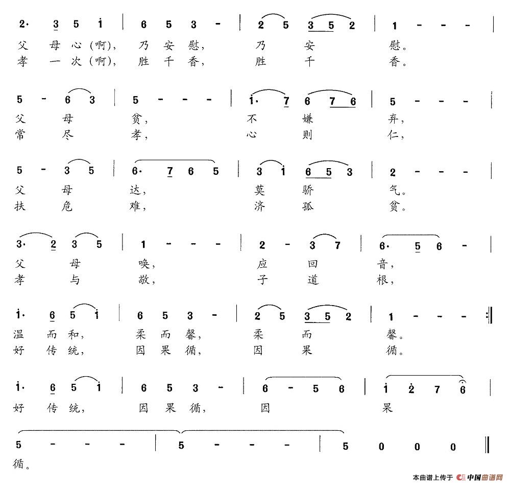 关于《新弟子规 一、孝而仁》曲谱的评论