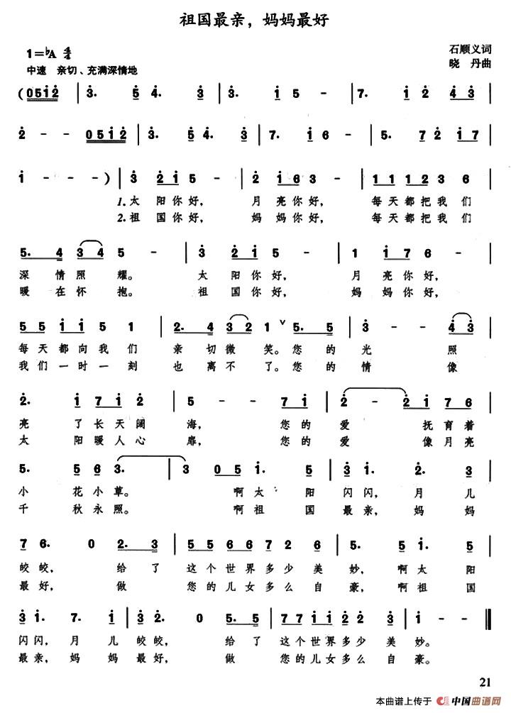 关于《祖国最亲,妈妈最好》曲谱的评论