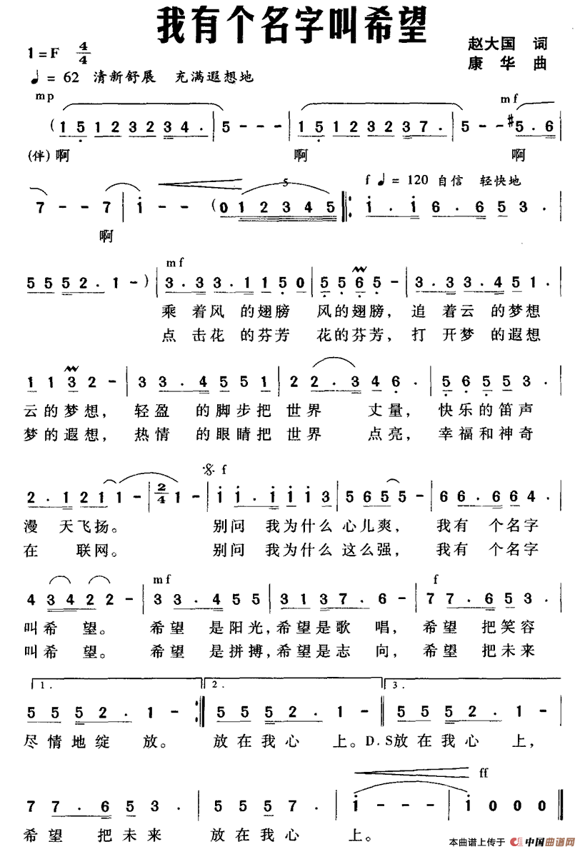 关于《我有个名字叫希望》曲谱的评论
