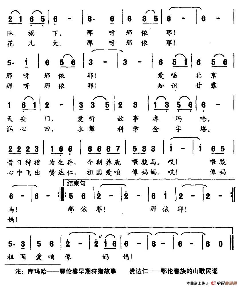 关于《鄂伦春娃娃赛鲜花》曲谱的评论