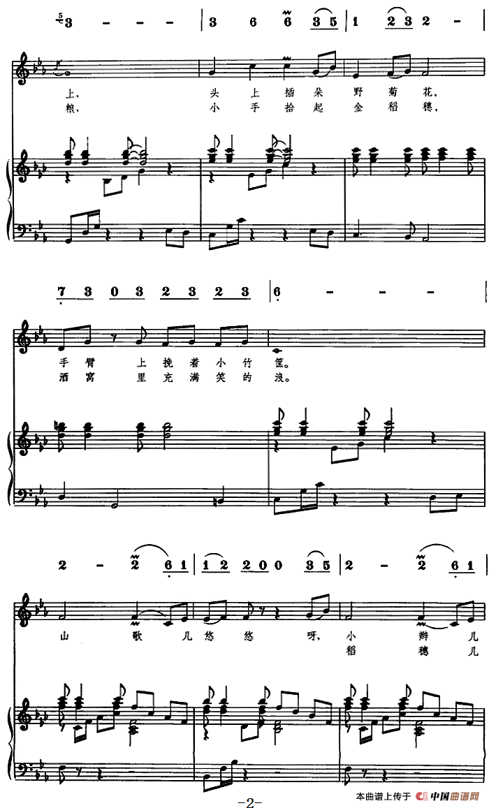 拾稻穗的小姑娘(线简谱对照、正谱)