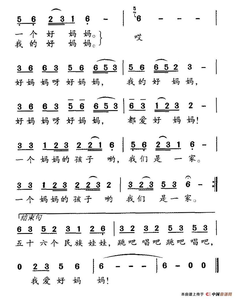 哎...好妈妈呀好妈妈,我的好妈妈,好妈妈呀好妈妈,都爱好妈妈!一个妈妈的孩子哟,我们是一家。