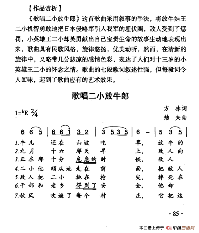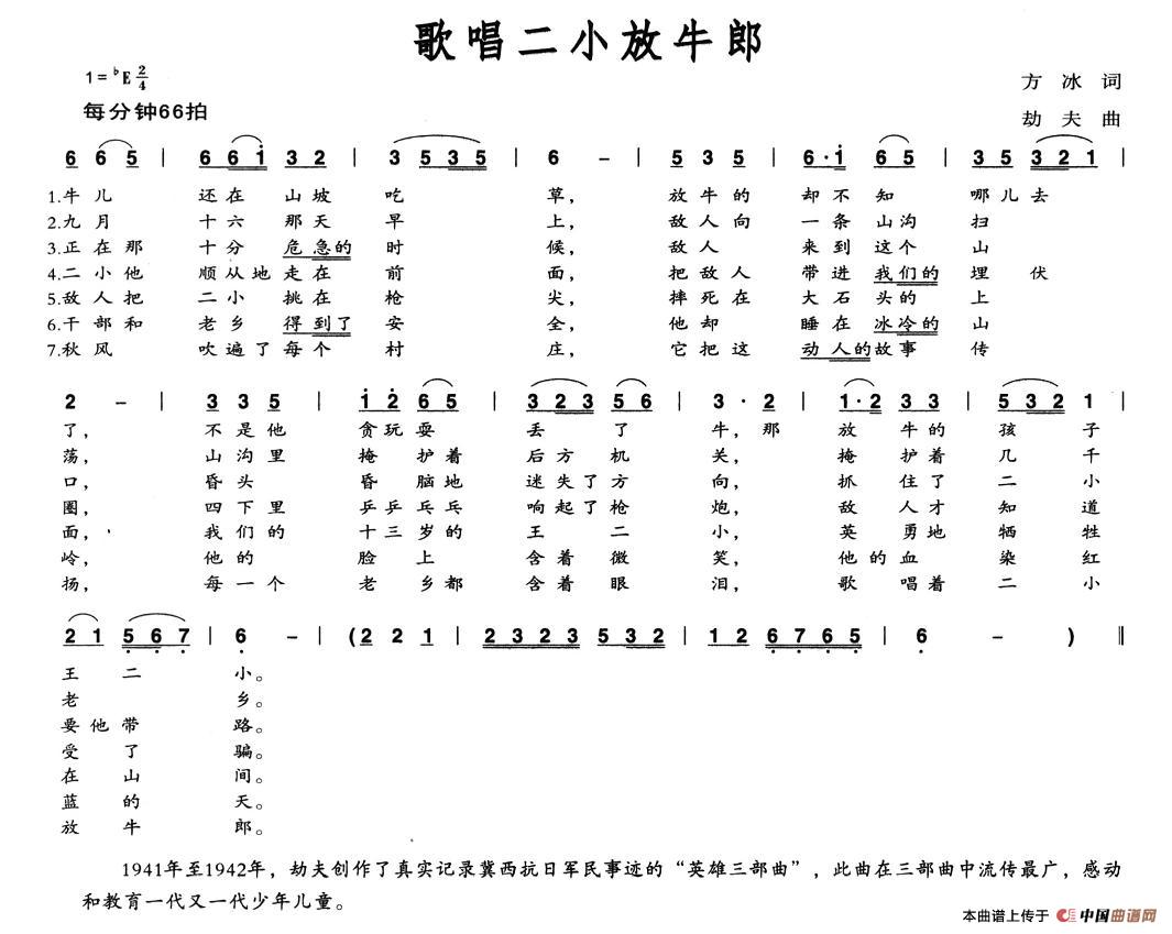 关于《歌唱二小放牛郎》曲谱的评论