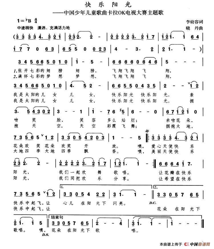 关于《快乐阳光》曲谱的评论