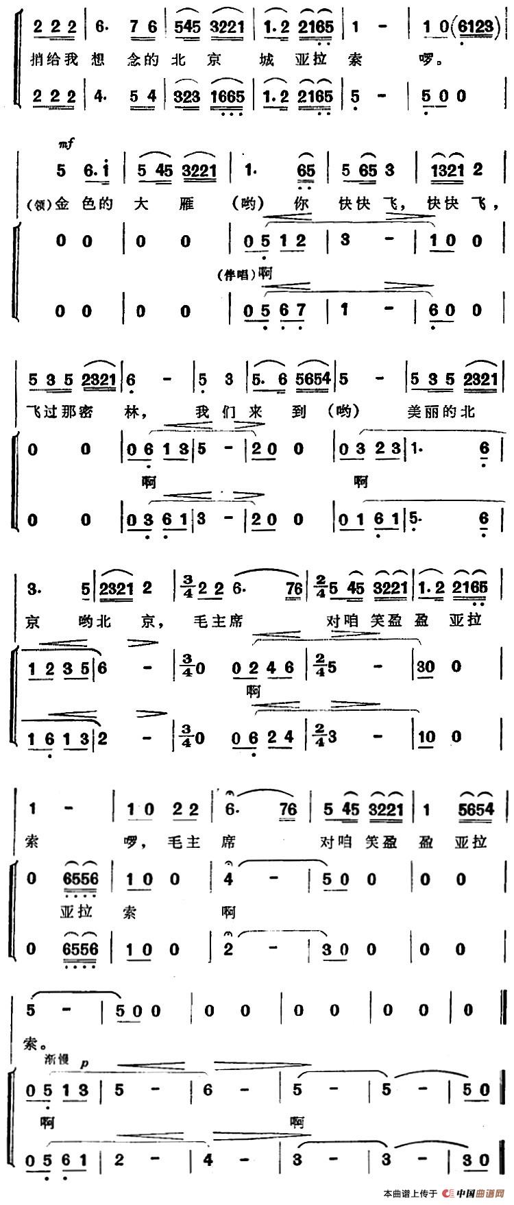关于《雪莲献北京(剪纸影片《金色的大雁》插曲)》曲谱的评论