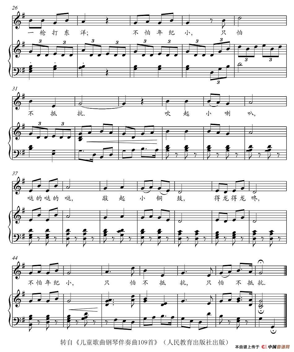 打起小铜鼓,得龙得龙咚!不怕年纪小,只怕不抵抗!只怕不抵抗!