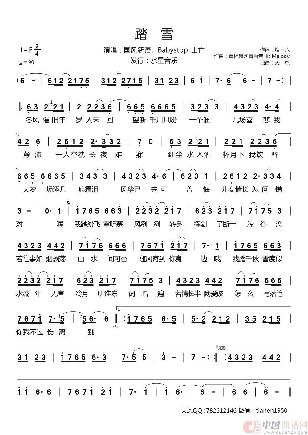 作词:烟十八 作曲:董相麟@喜百音Hit Melody 演唱(奏):国风新语、Babystop_山竹 来源:谱友天恩上传 上传:天恩