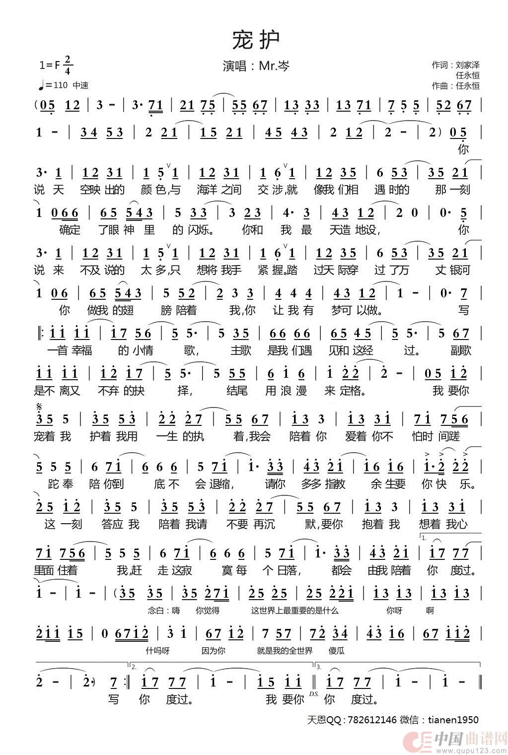 作词:刘家泽、任永恒 作曲:任永恒 演唱(奏):岑先生 来源:谱友天恩上传 上传:天恩