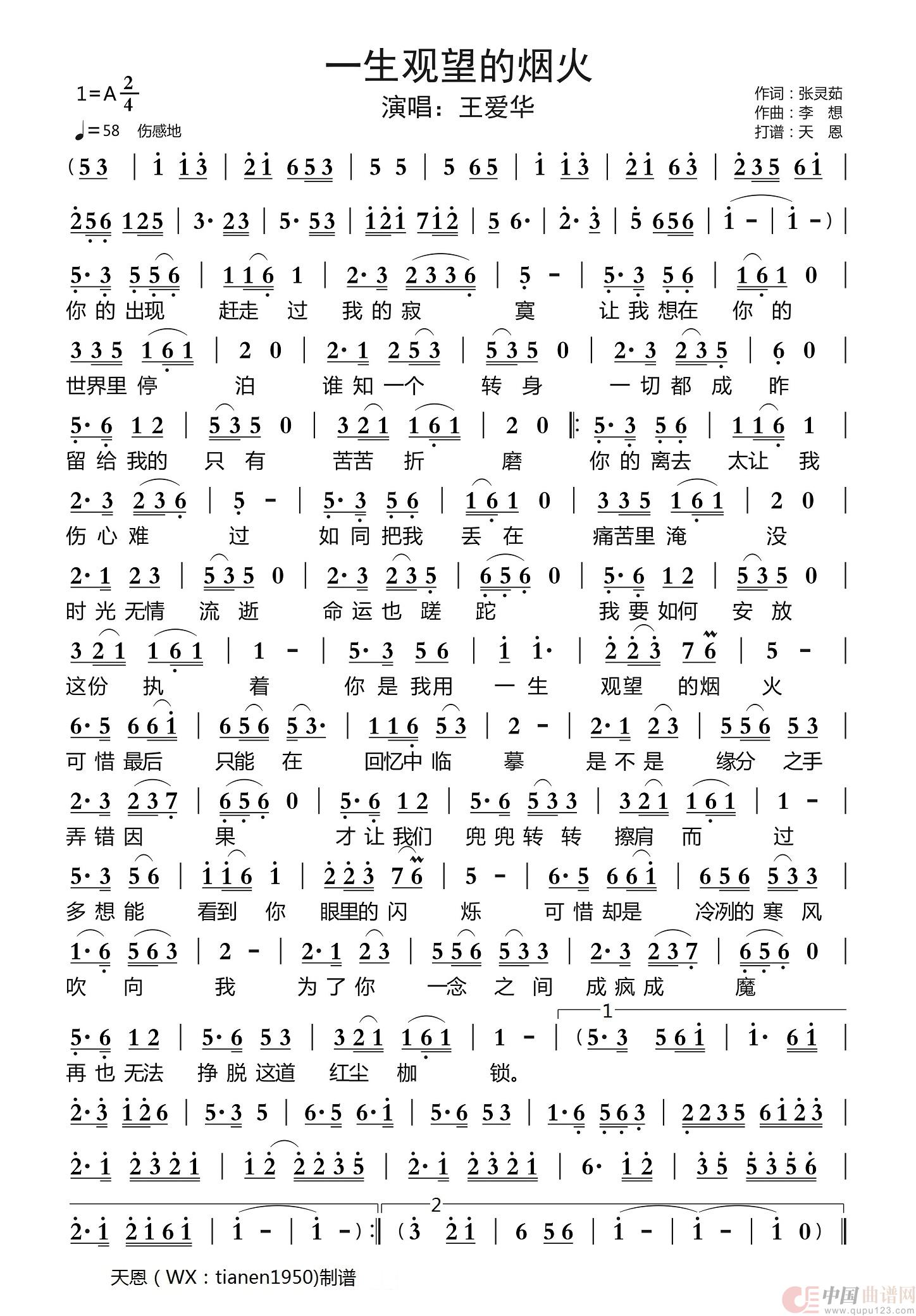 关于《一生观望的烟火》曲谱的评论