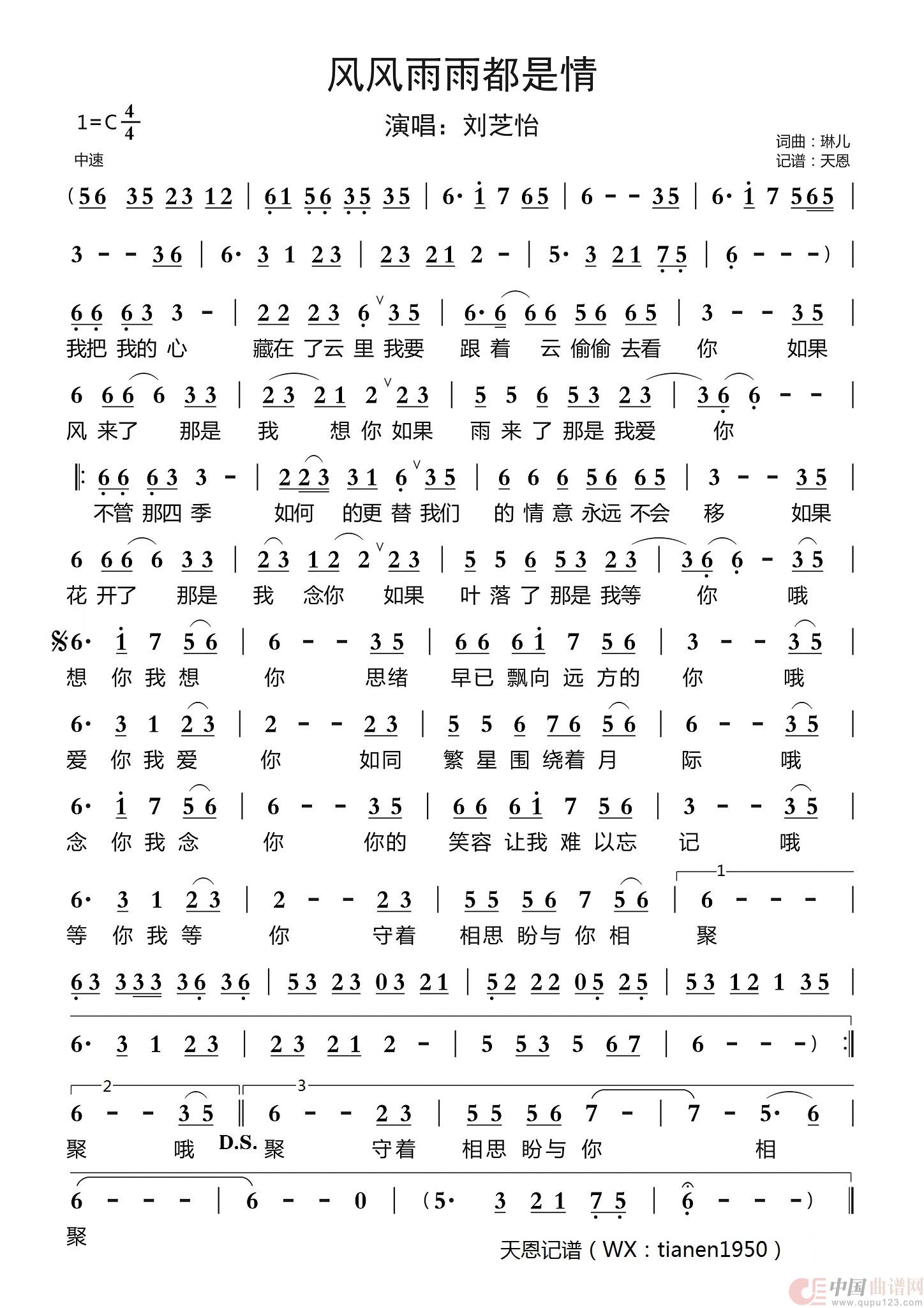 作词:琳儿 作曲:琳儿 演唱(奏):刘芝怡 来源:谱友天恩上传 上传:天恩