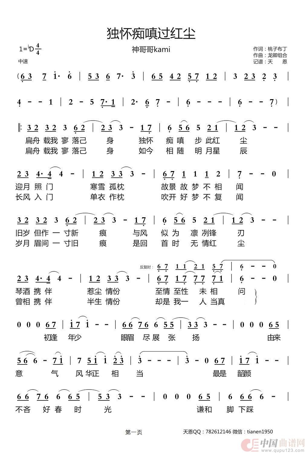 作词:桃子布丁 作曲:龙卿组合 演唱(奏):神哥哥kami 来源:谱友天恩上传 上传:天恩