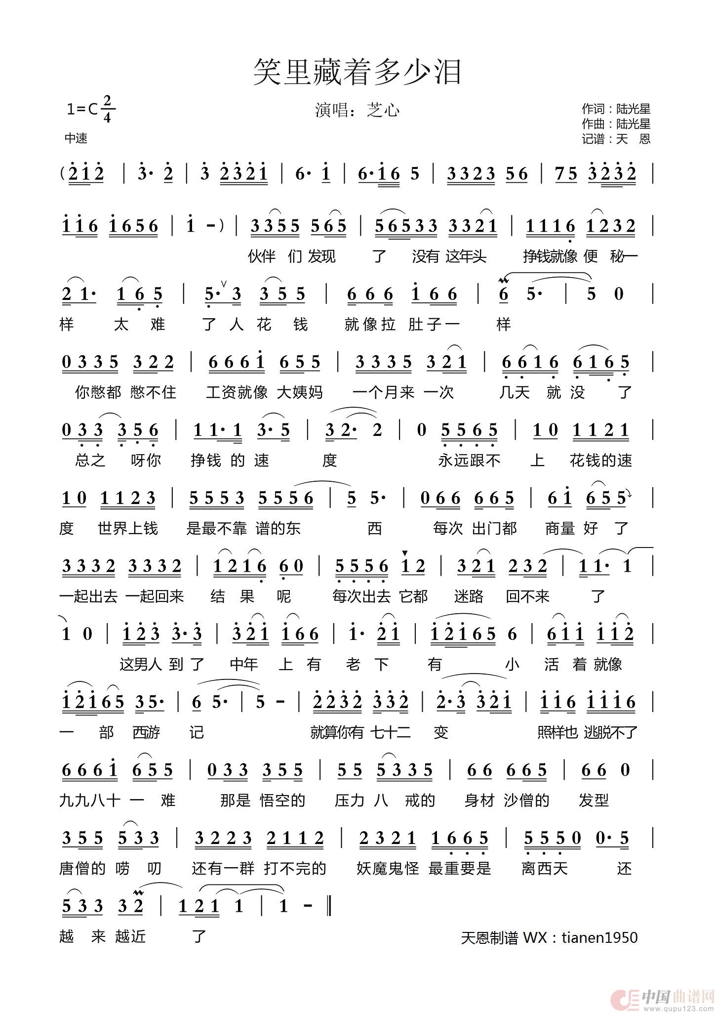 作词:陆光星 作曲:陆光星 演唱(奏):芝心 来源:谱友天恩上传 上传:天恩
