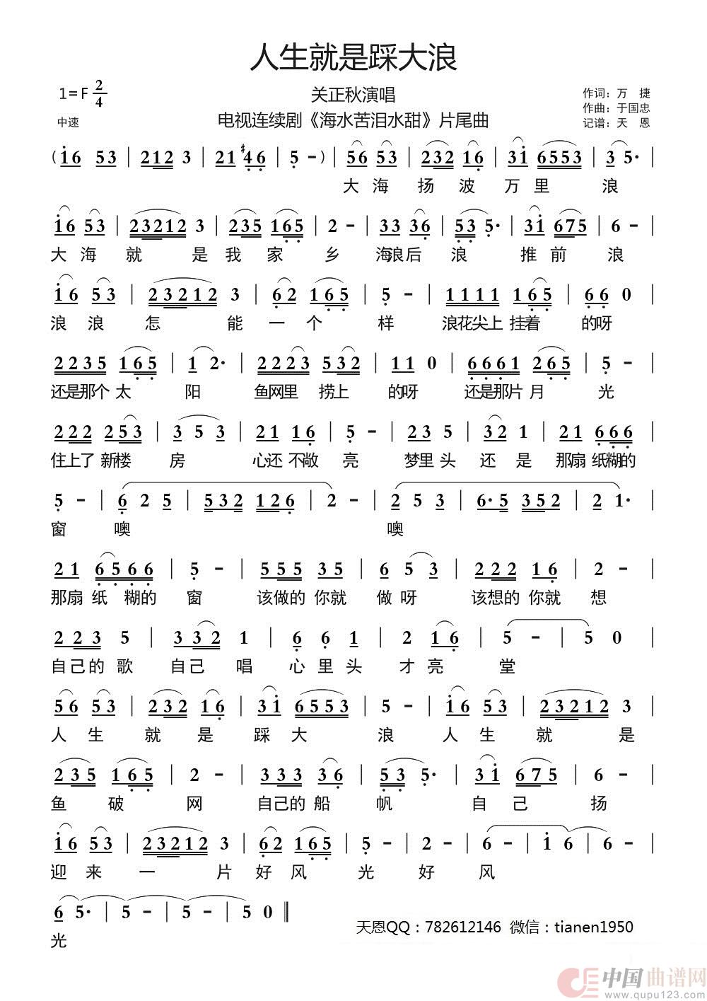 关于《人生就是踩大浪》曲谱的评论