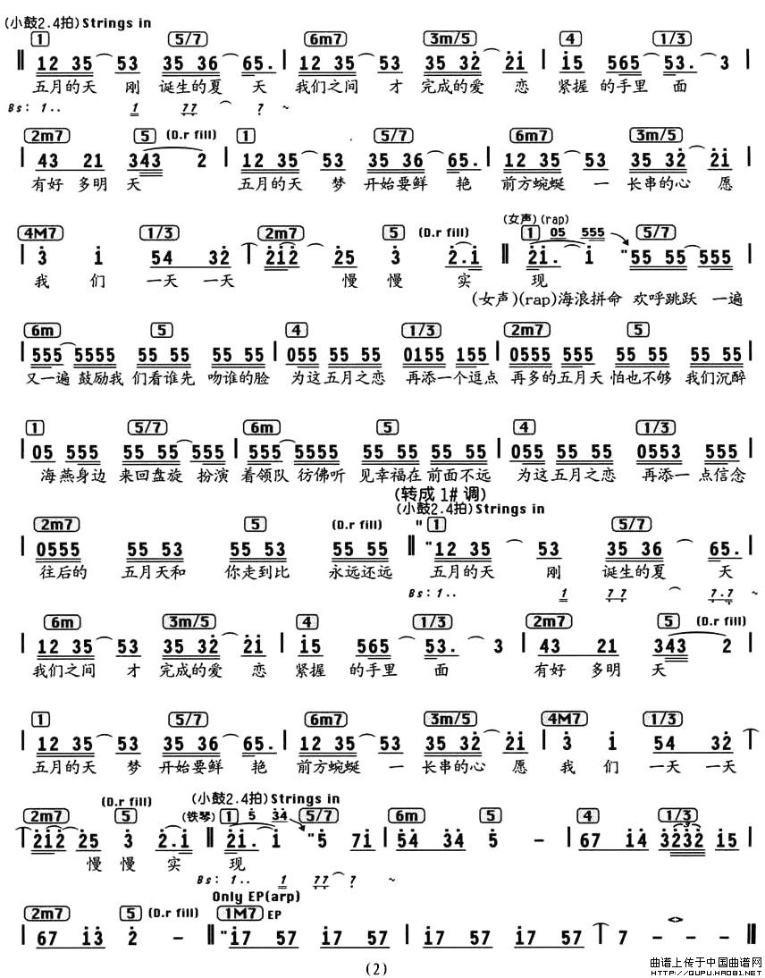 五月天(编配乐谱)