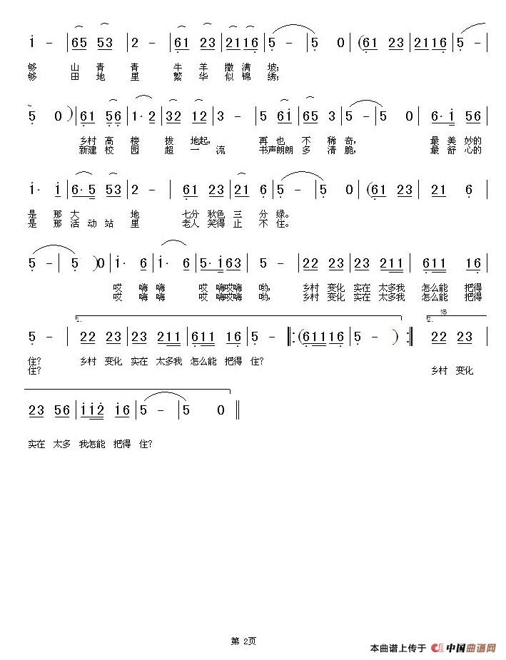 我是农村妇女,一直生活在农村,目睹农村日异月新的变化,(‘怎能把得住’是南方农村方言,意思是变化太快,谁也阻挡不了’)。非常感谢北京黄绪励老师无私地奉献,支持乡村民间文化而作曲编曲。