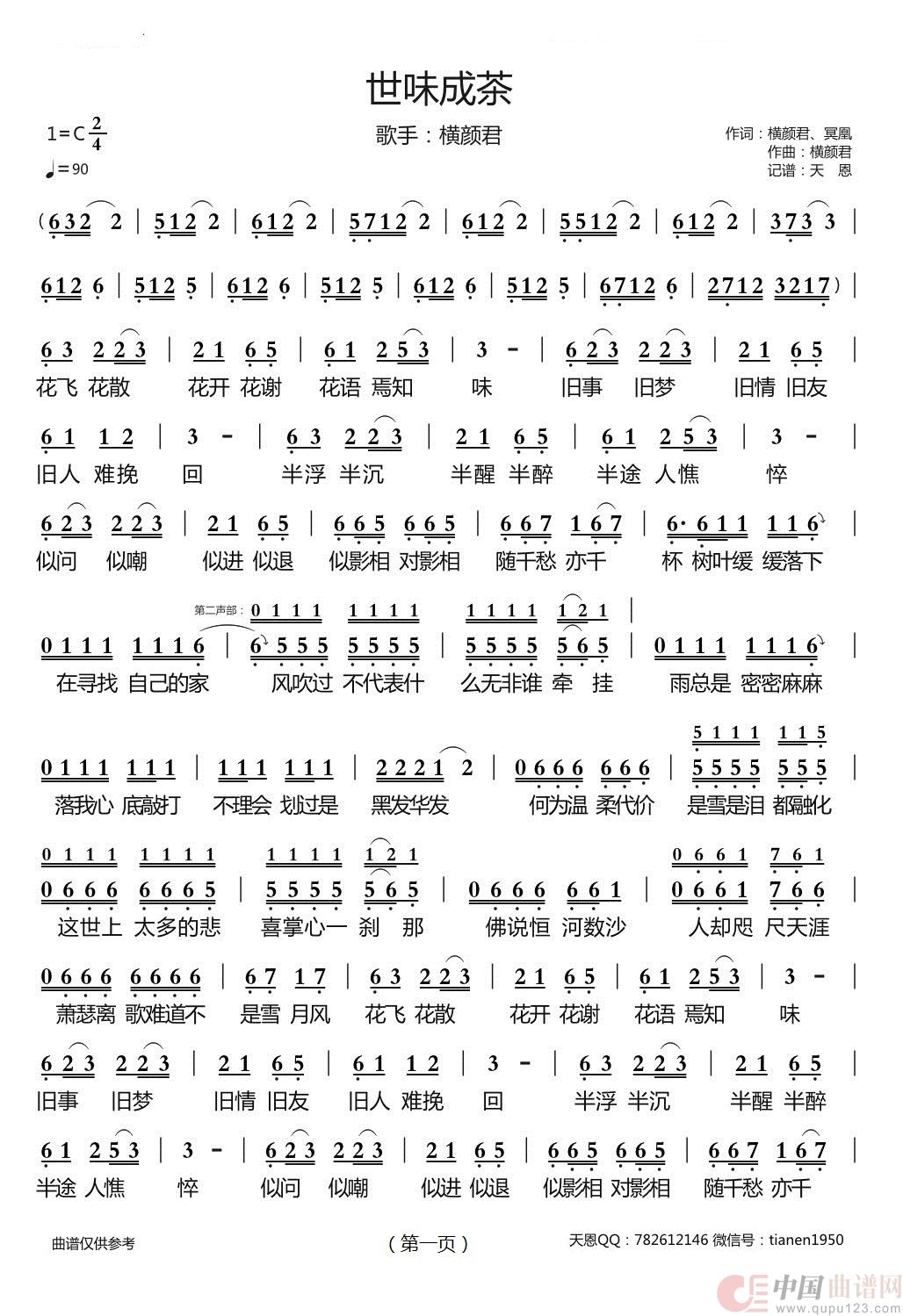 作词:横颜君、冥凰 作曲:横颜君 演唱(奏):横颜君 来源:谱友天恩上传 上传:天恩