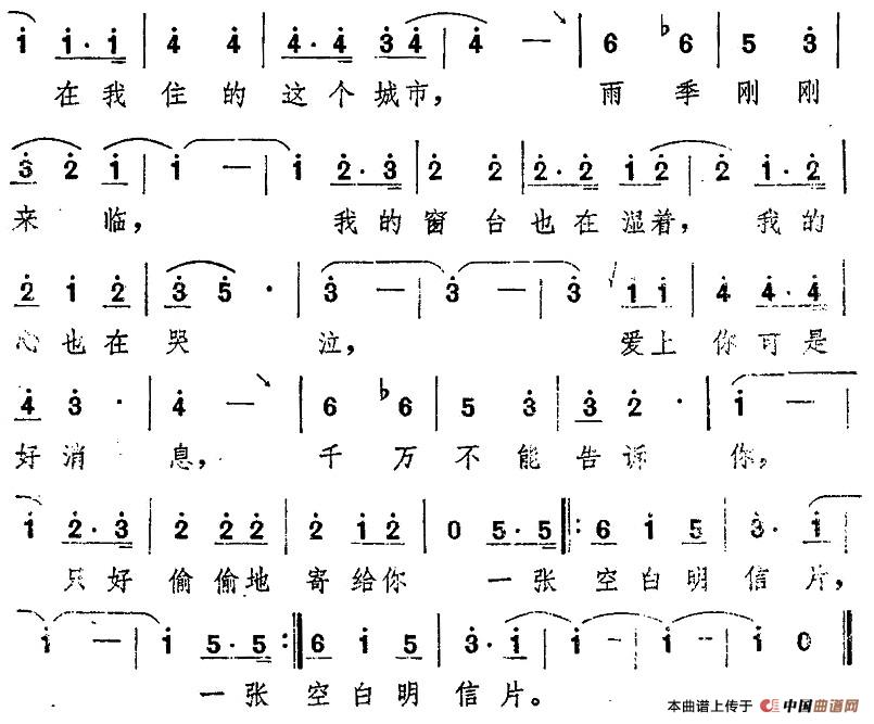 关于《空白明信片》曲谱的评论