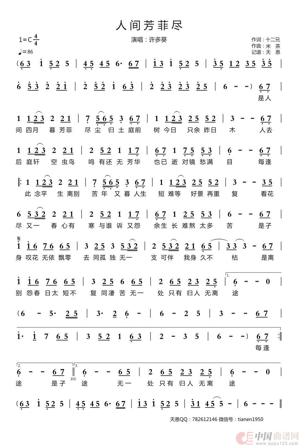 关于《人间芳菲尽》曲谱的评论