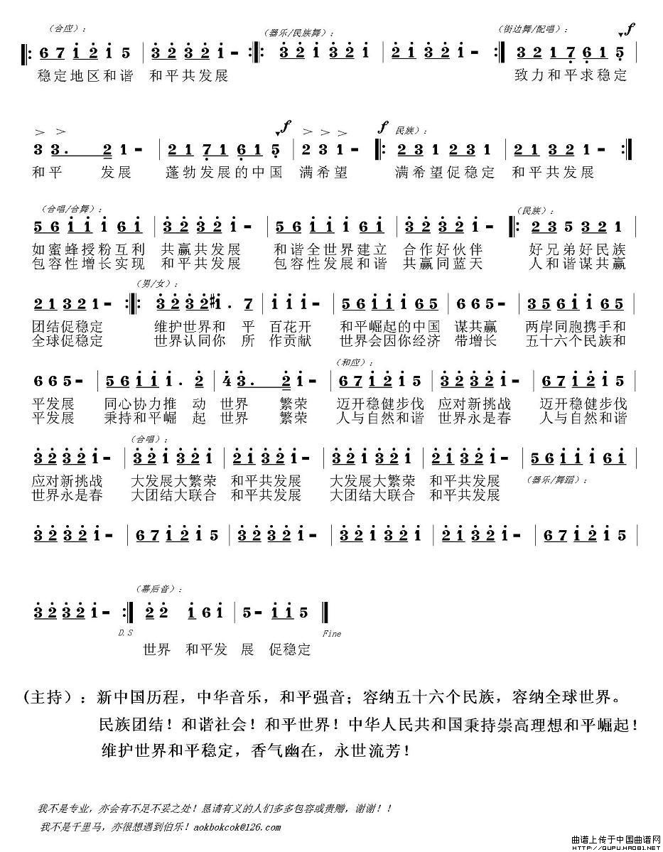 关于《和平共发展》曲谱的评论