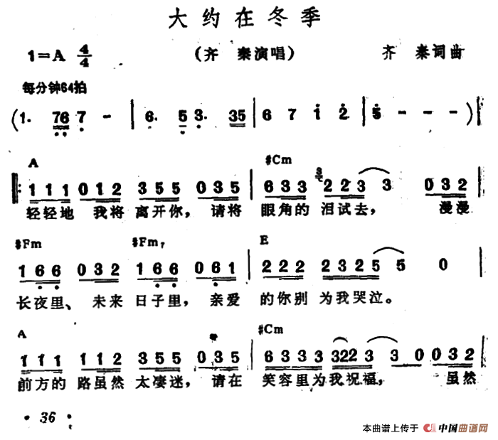 关于《大约在冬季》曲谱的评论