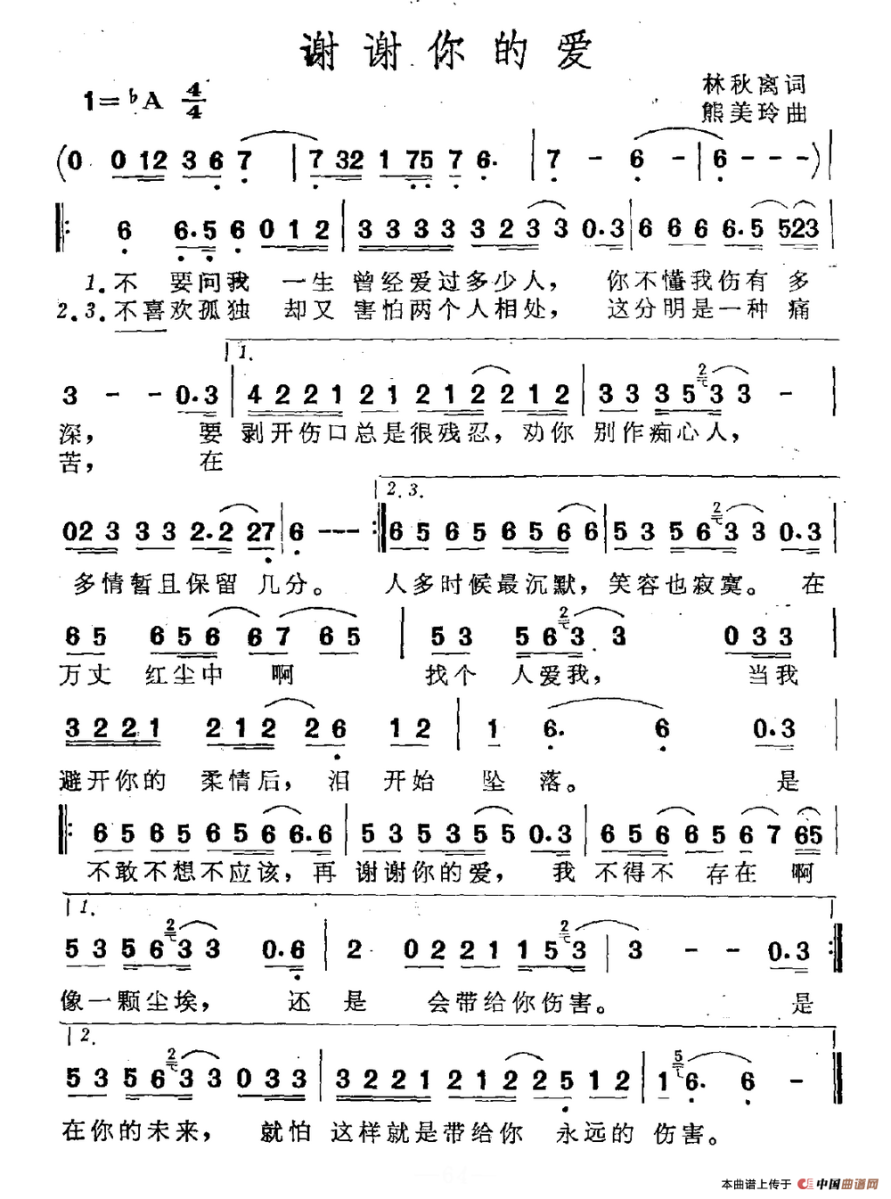 关于《谢谢你的爱》曲谱的评论