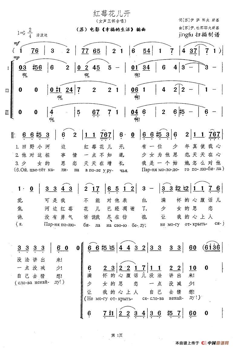 关于《[前苏联] 红莓花儿开》曲谱的评论