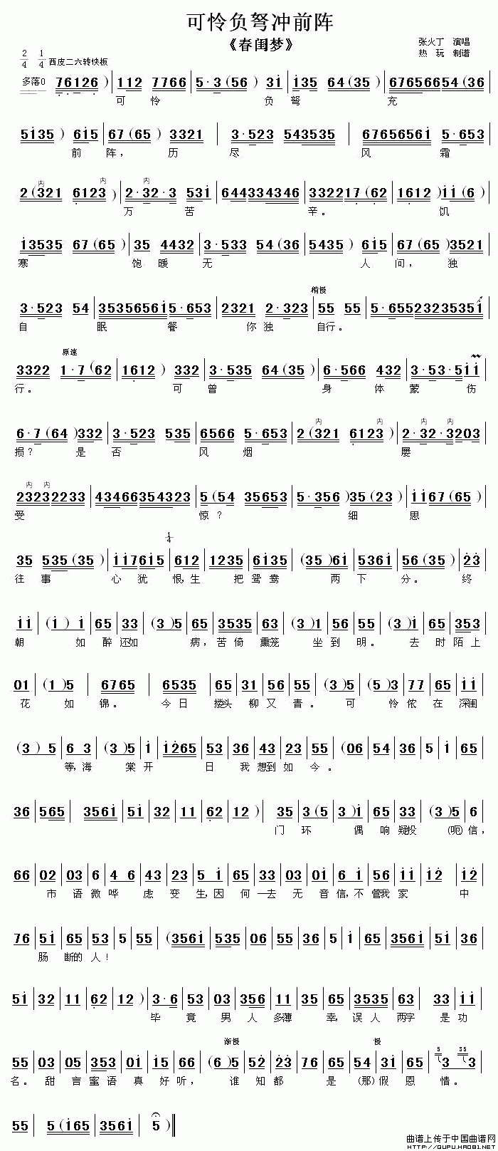 可怜负弩充前阵(《春闺梦》选段、伴奏谱)