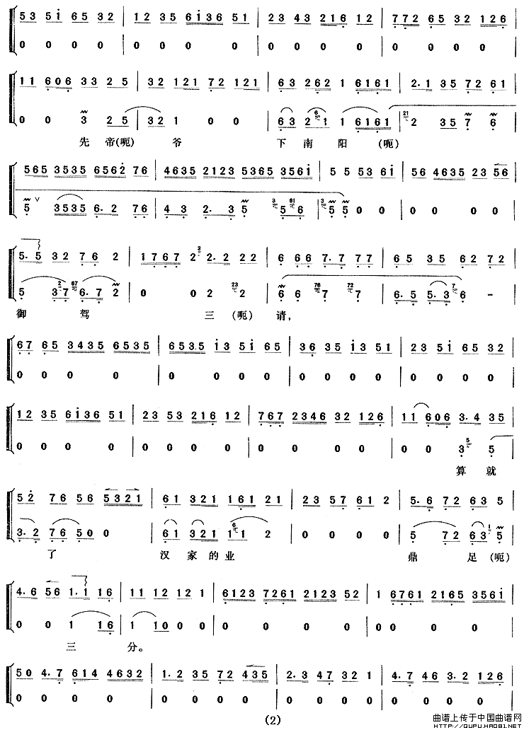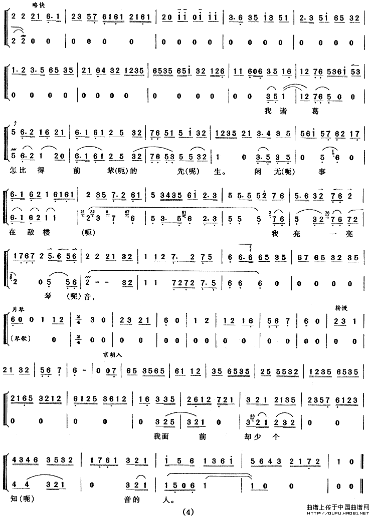关于《我本是卧龙岗散淡的人》曲谱的评论