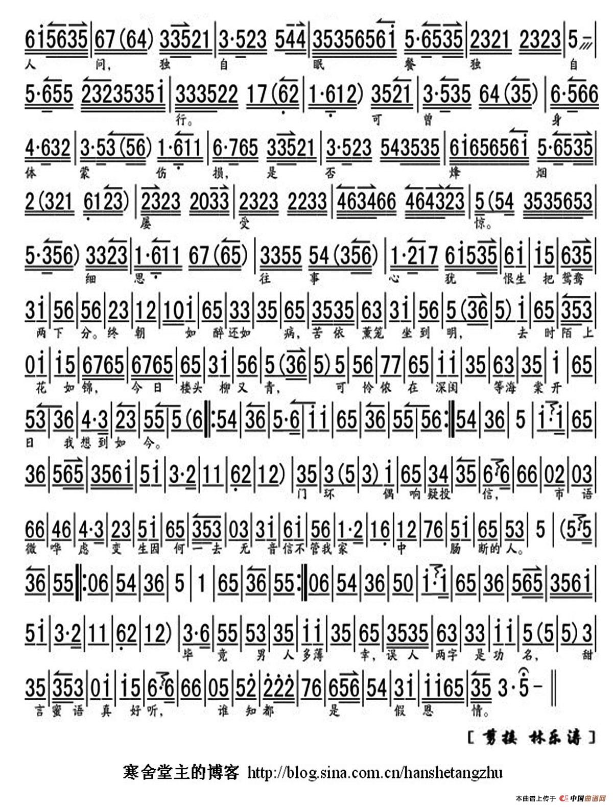 可怜负弩充前阵(《春闺梦》选段、琴谱、林乐涛制谱版)