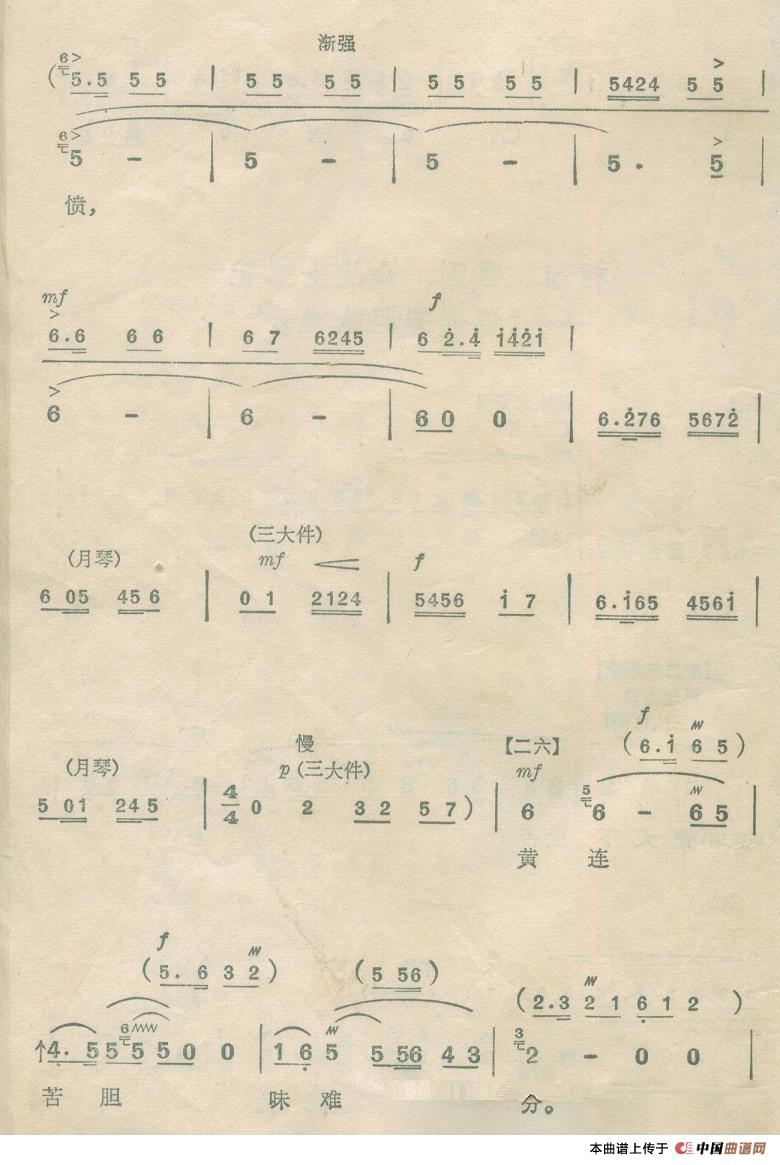 关于《黄连苦胆味难分》曲谱的评论