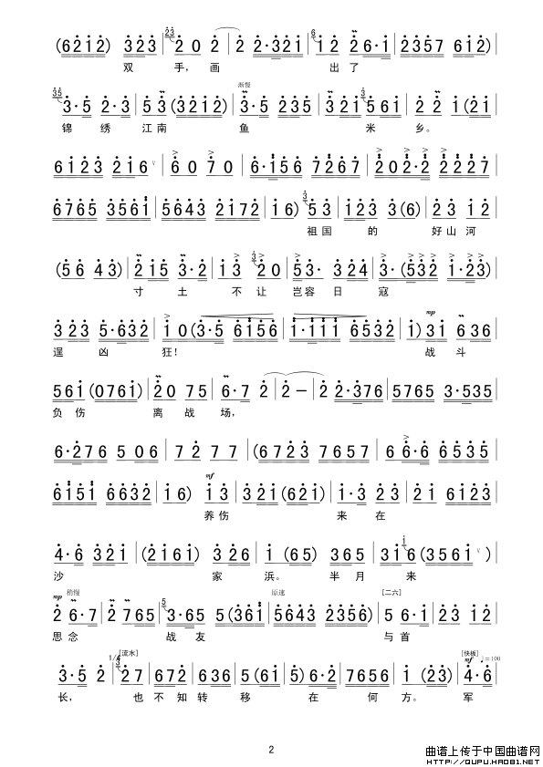 关于《祖国的好山河寸土不让》曲谱的评论