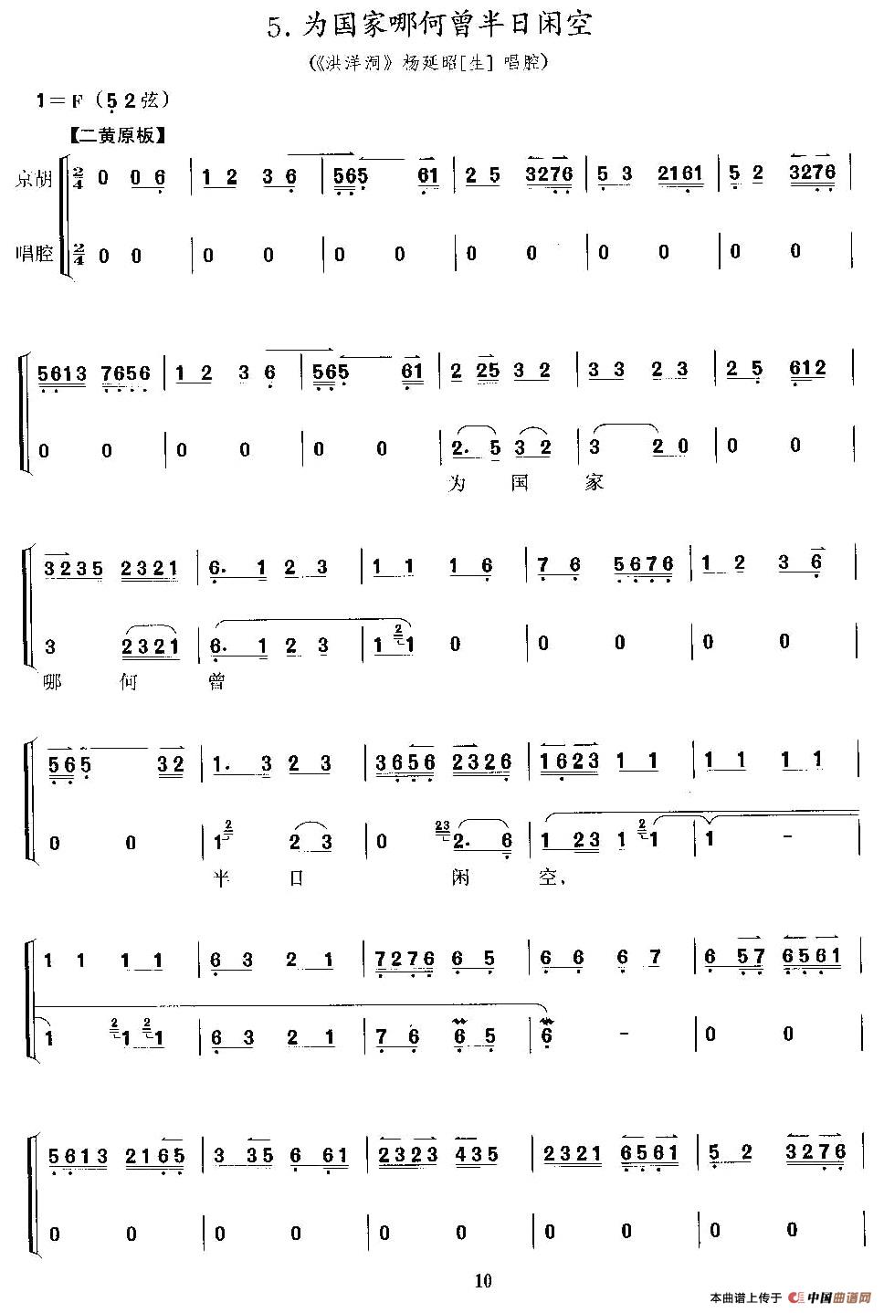 为国家哪何曾半日闲空(《洪羊洞》杨延昭唱段、琴谱)
