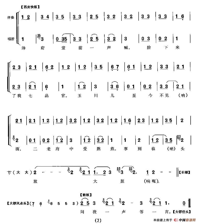 关于《帅府堂前一声喊》曲谱的评论