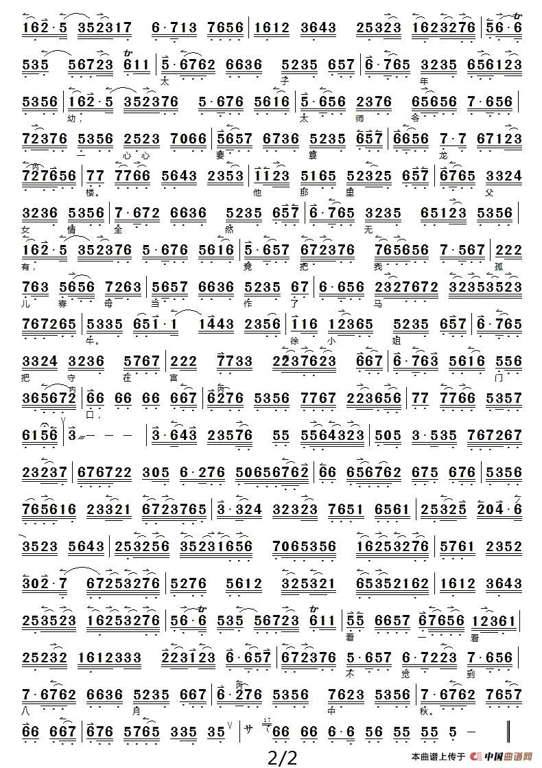 自那日与徐杨决裂以后(《二进宫》选段、京胡伴奏谱)