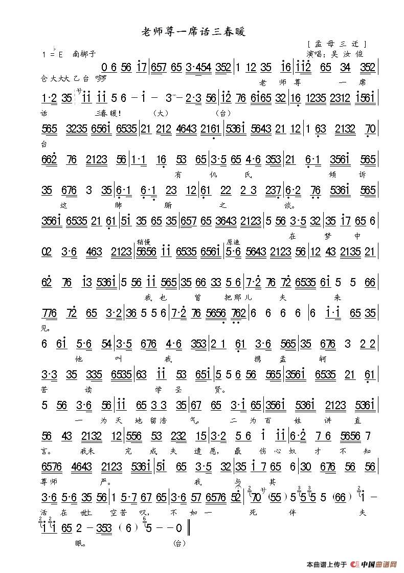 老师尊一席话三春暖(《孟母三迁》选段、琴谱)