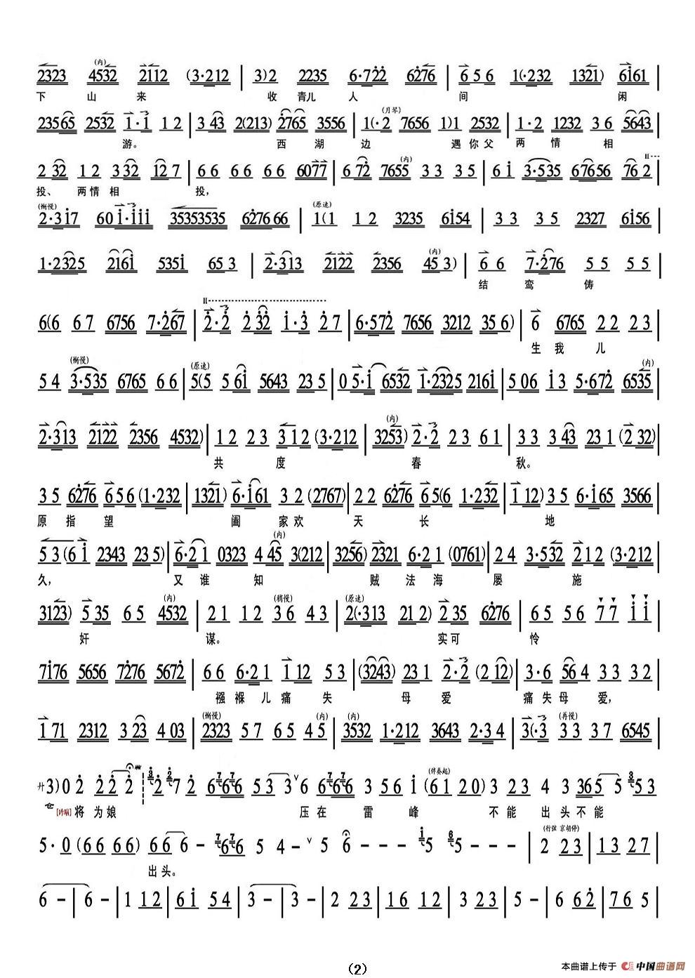 忆往事恰似那江水东流(《白蛇传.雷锋塔》选段、琴谱)