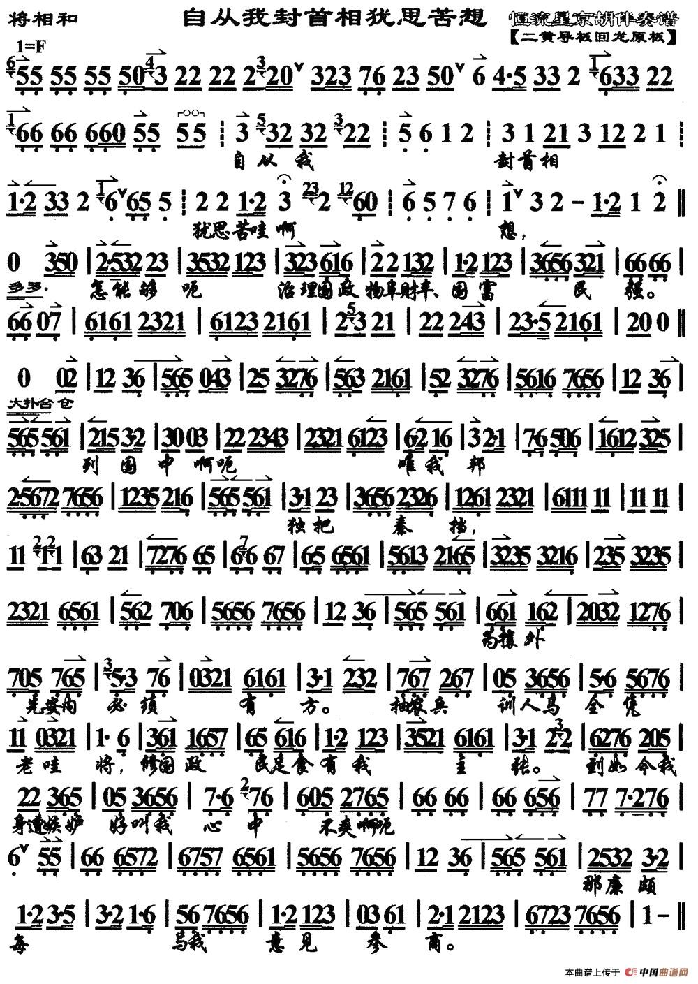 自从我封首相忧思苦想(《将相和》选段、琴谱)