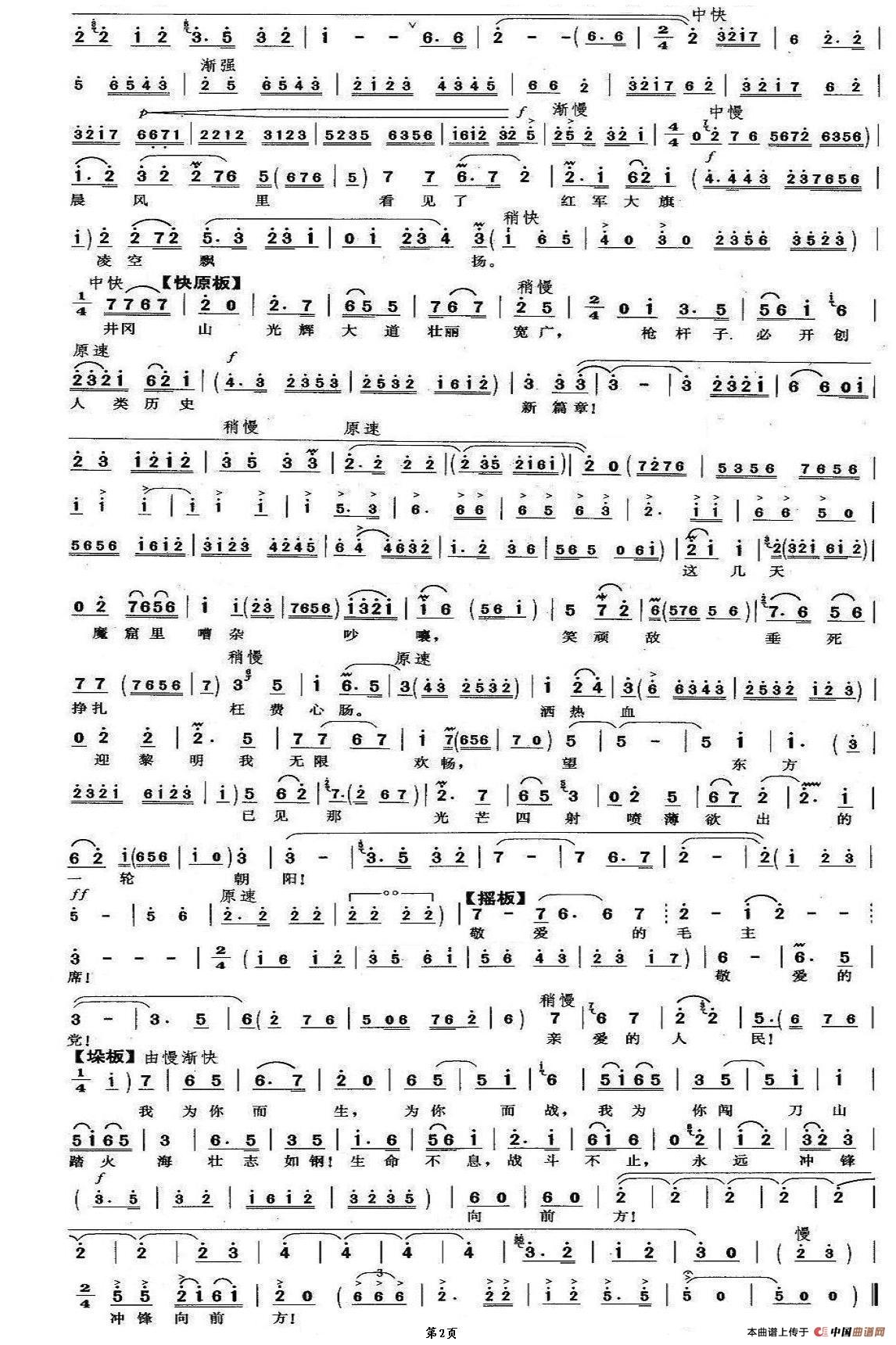 关于《永远冲锋向前方》曲谱的评论
